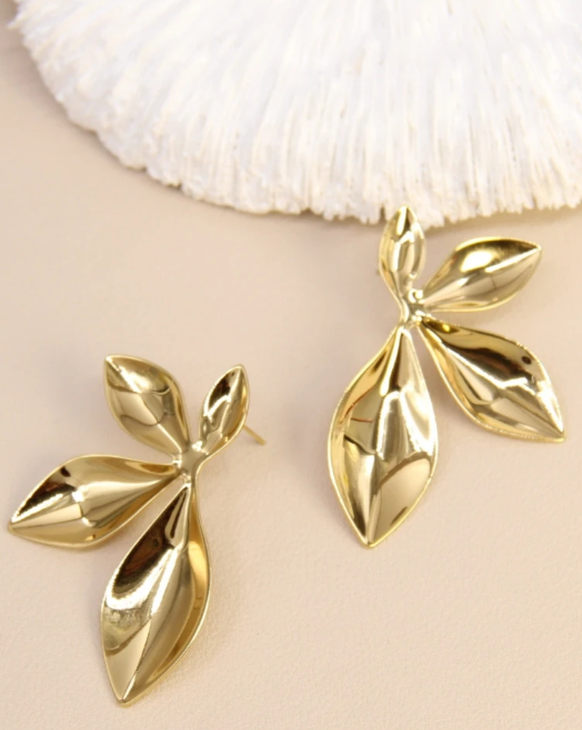 Ces boucles d’oreilles en forme de feuilles allient design organique et finesse dorée. Confectionnées en acier inoxydable, elles offrent une allure chic et durable, idéale pour une clientèle en quête d’élégance naturelle et de bijoux raffinés.